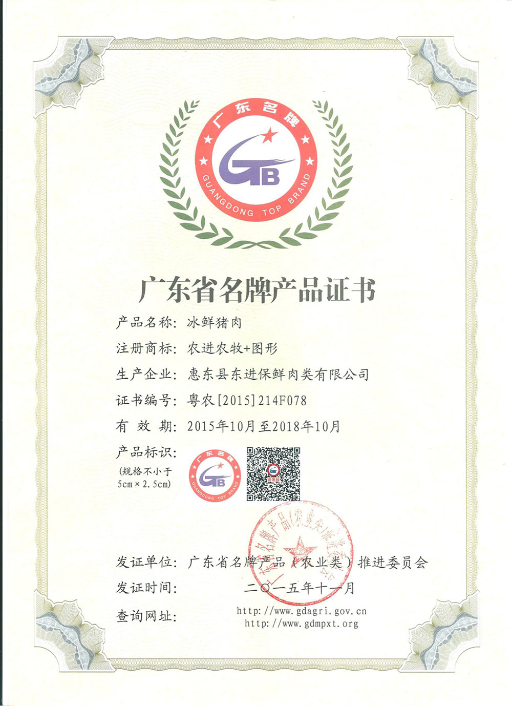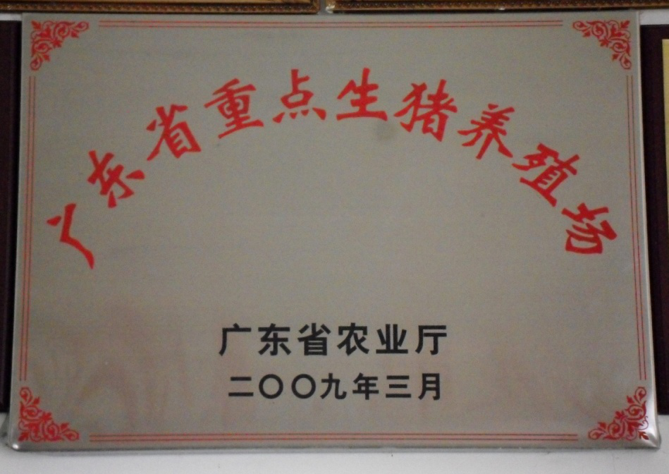- 广东出入境检验检疫局批准注册为“供港澳活猪饲养场”注册编号为:GDS182